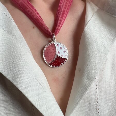 Colgante Circle Patch Esmaltes Rosa Fantasía